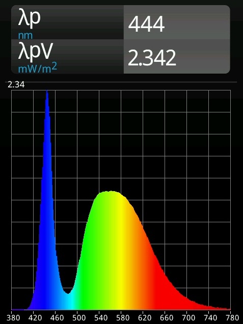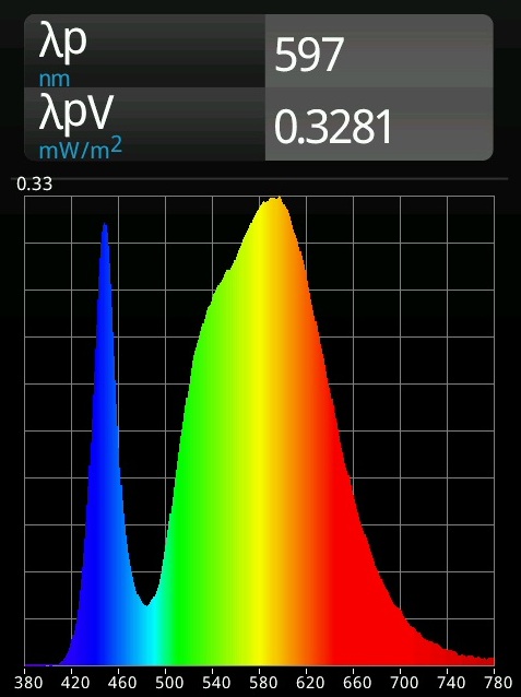 Právě teplota chromatičnosti 3000K má velmi značný podíl modré složky, ikdyž je to „teplá bílá“ a svítí pohledově žlutěji.